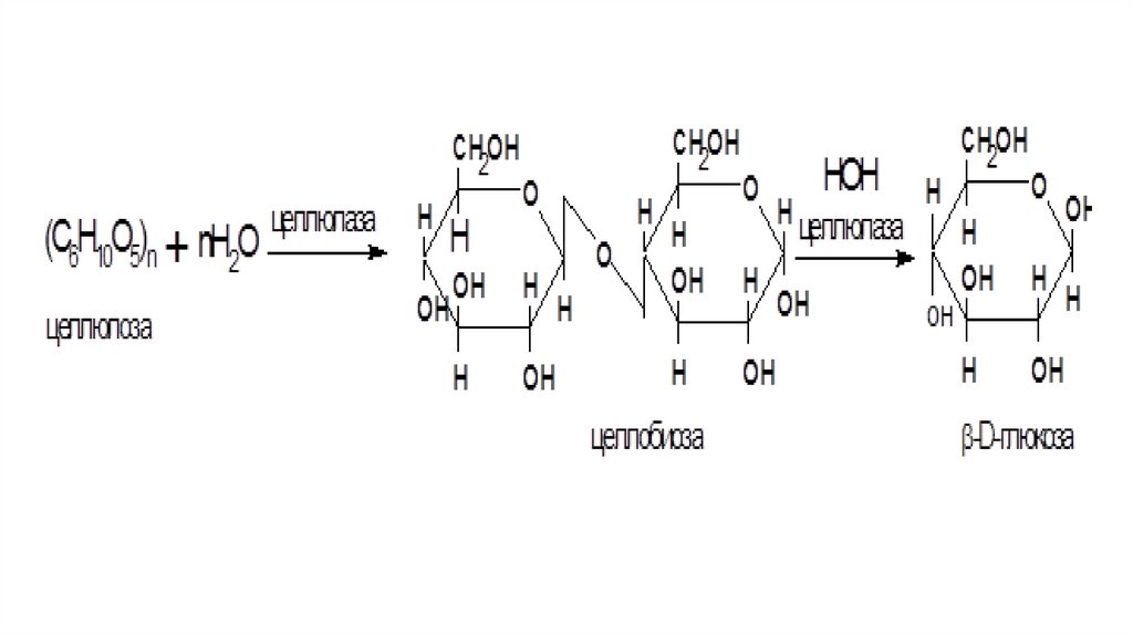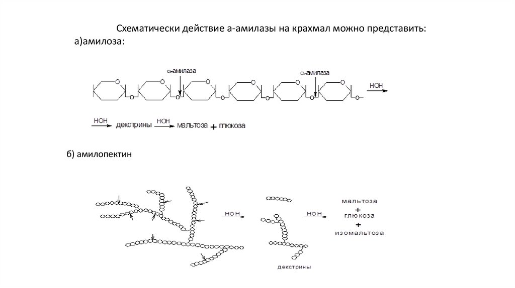 Схематически действие a-амилазы на крахмал можно представить:а)амилоза: