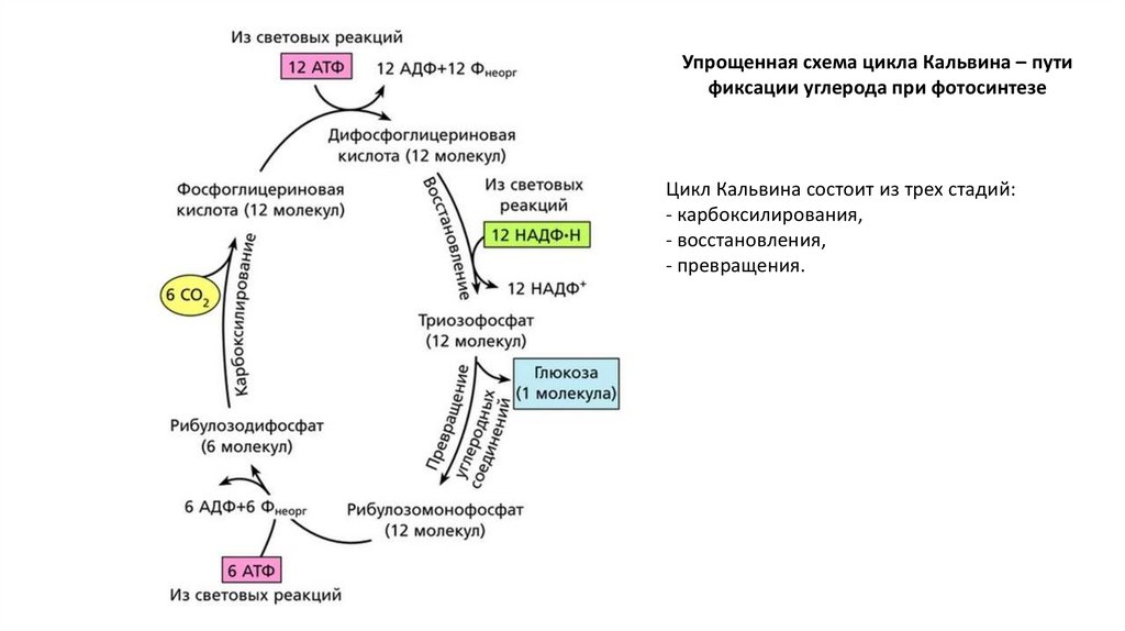 Упрощенная схема цикла Кальвина – путификсации углерода при фотосинтезе