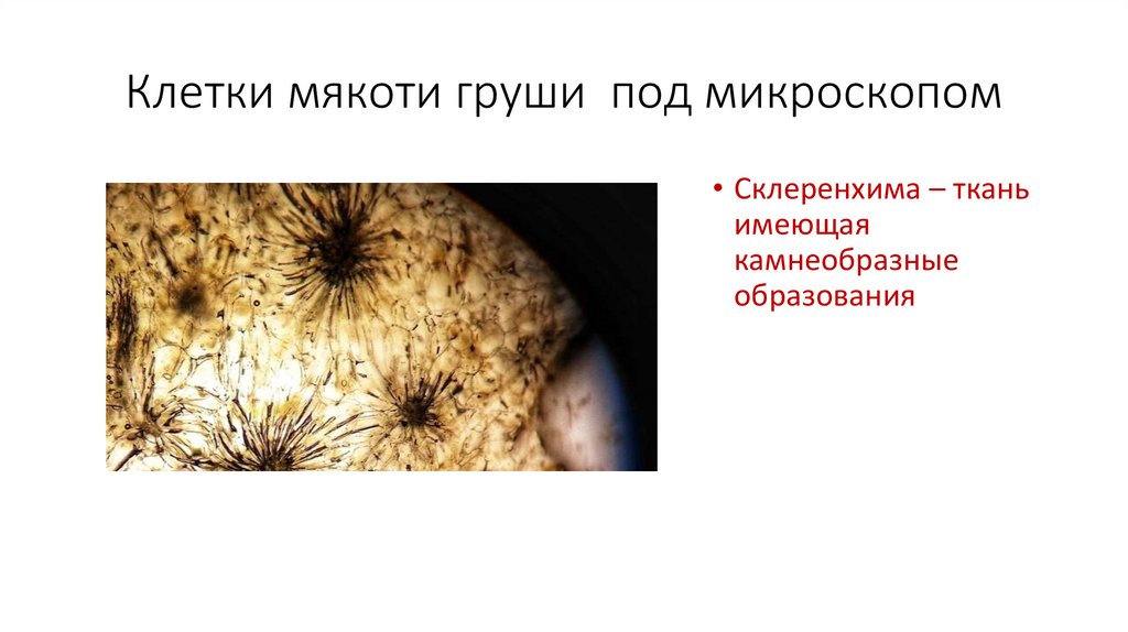 Клетки мякоти груши под микроскопом• Склеренхима – ткань