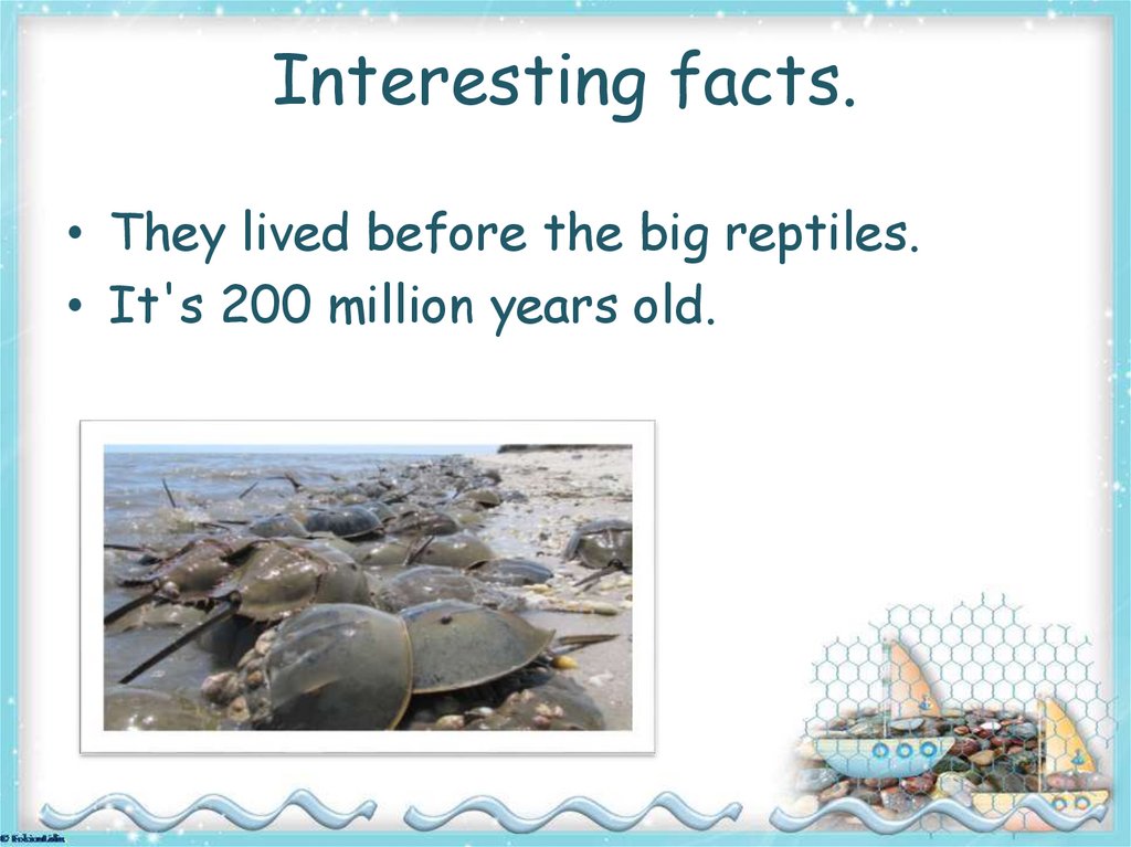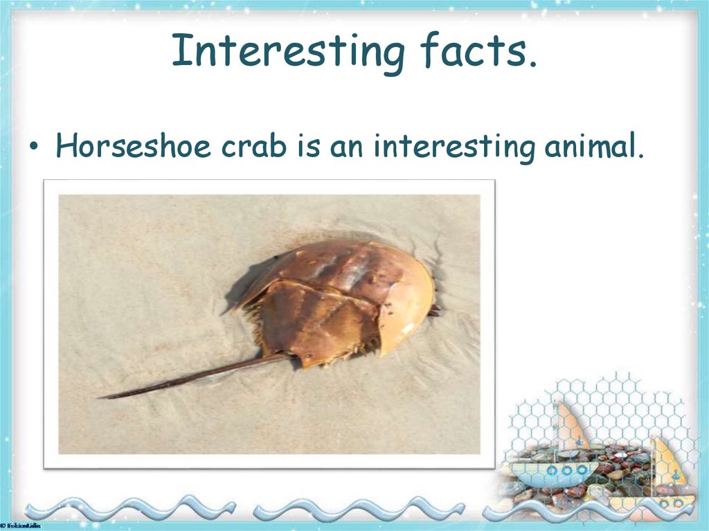 Interesting facts.• Horseshoe crab is an interesting animal.