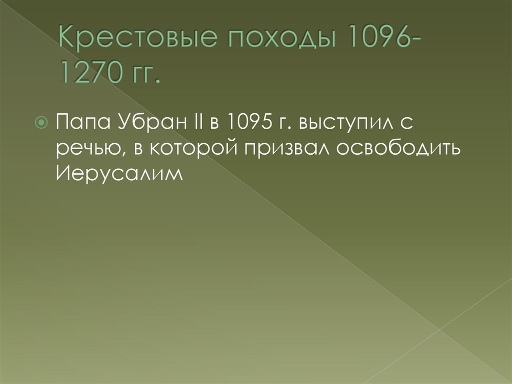 Папа Убран II в 1095 г. выступил сречью, в которой призвал освободить