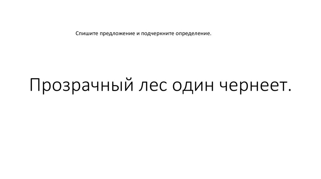 Спишите предложение и подчеркните определение.Прозрачный лес один чернеет.