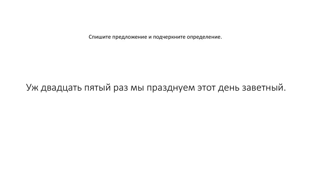 Спишите предложение и подчеркните определение.Уж двадцать пятый раз мы празднуем этот день заветный.