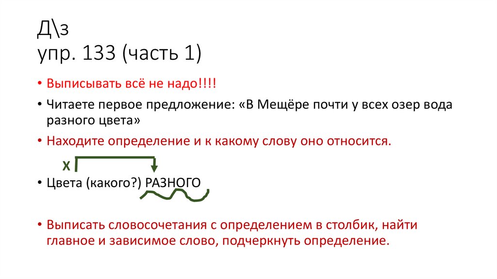 • Читаете первое предложение: «В Мещёре почти у всех озер вода