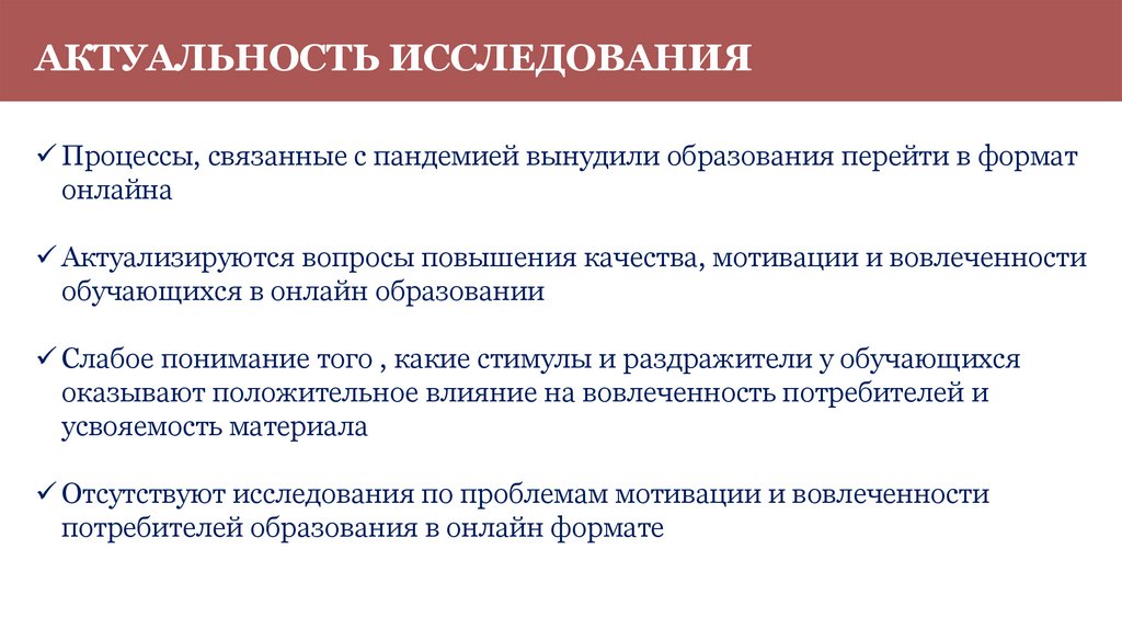 АКТУАЛЬНОСТЬ ИССЛЕДОВАНИЯПроцессы, связанные с пандемией вынудили образования перейти в формат