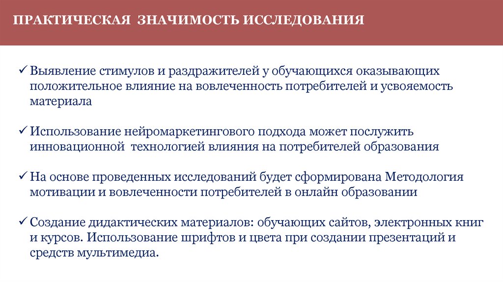 ПРАКТИЧЕСКАЯ ЗНАЧИМОСТЬ ИССЛЕДОВАНИЯВыявление стимулов и раздражителей у обучающихся оказывающих