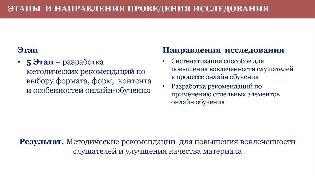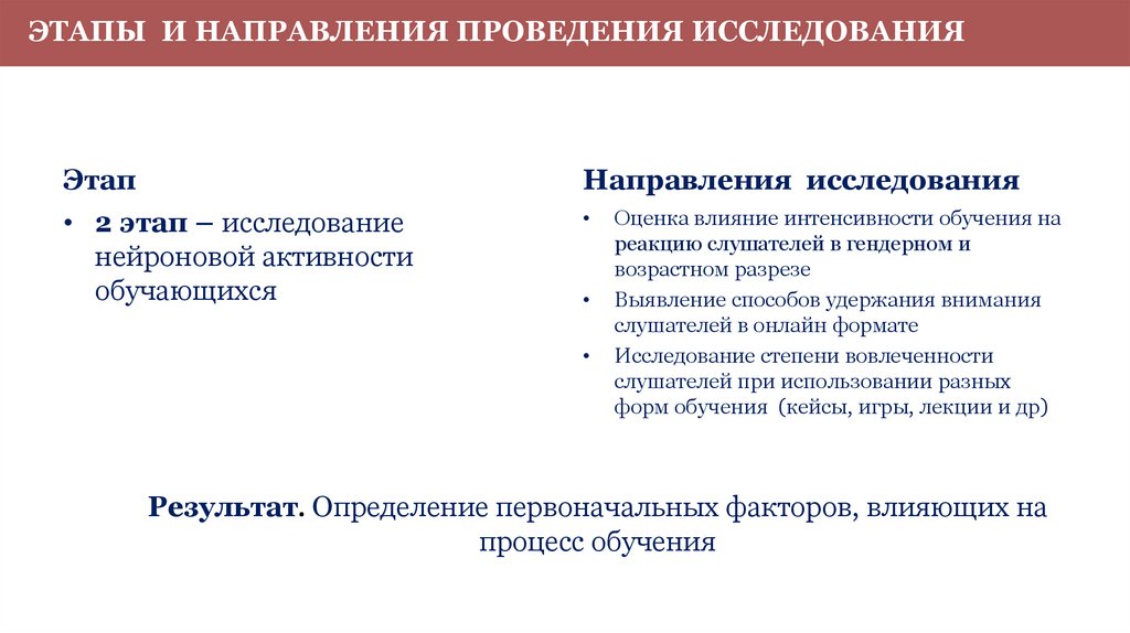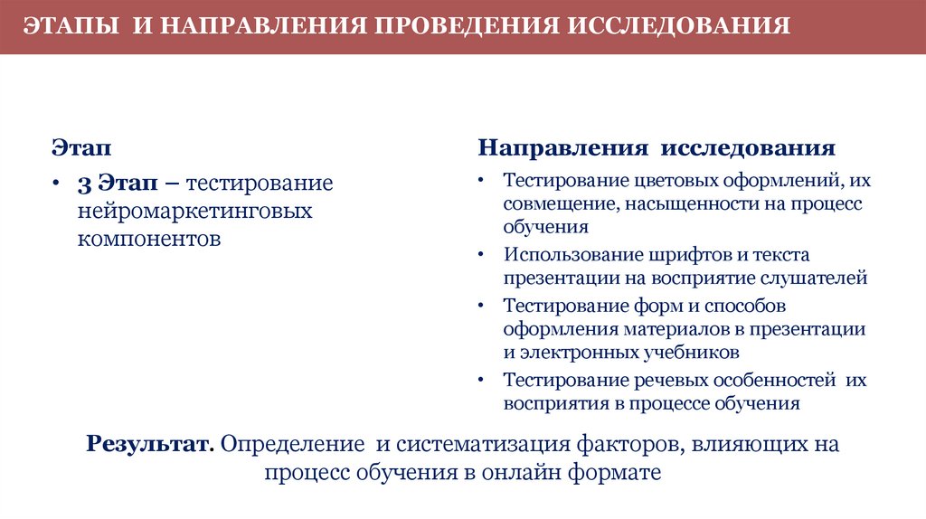 ЭТАПЫ И НАПРАВЛЕНИЯ ПРОВЕДЕНИЯ ИССЛЕДОВАНИЯЭтап