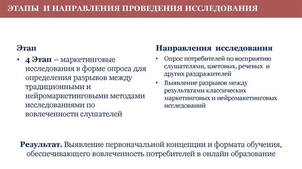 Результат. Выявление первоначальной концепции и формата обучения,