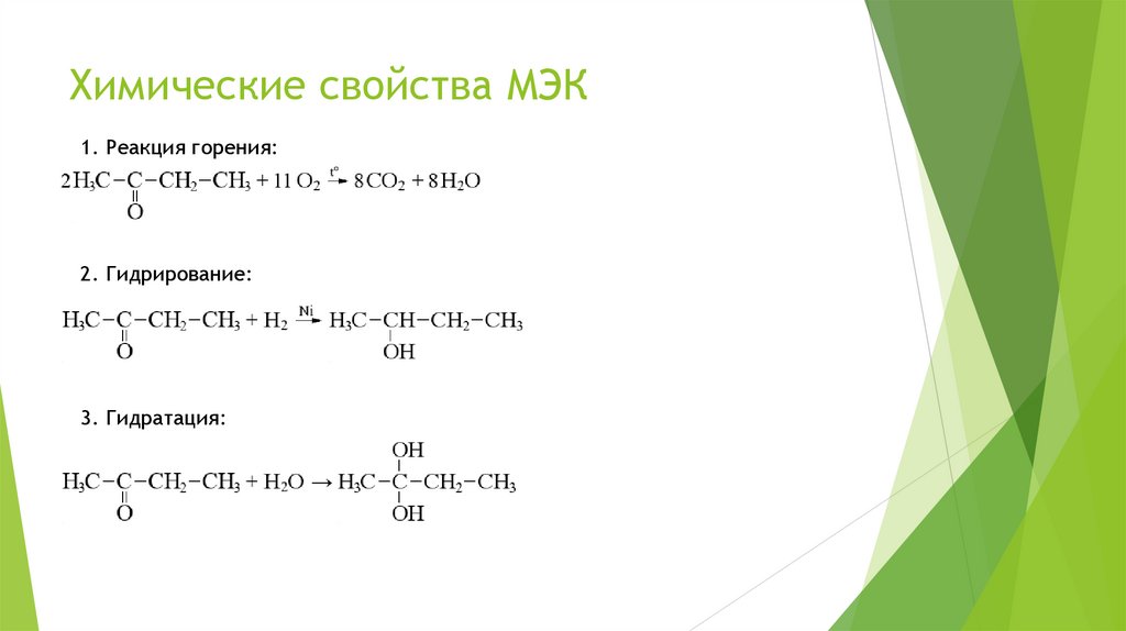 Химические свойства МЭК1. Реакция горения: