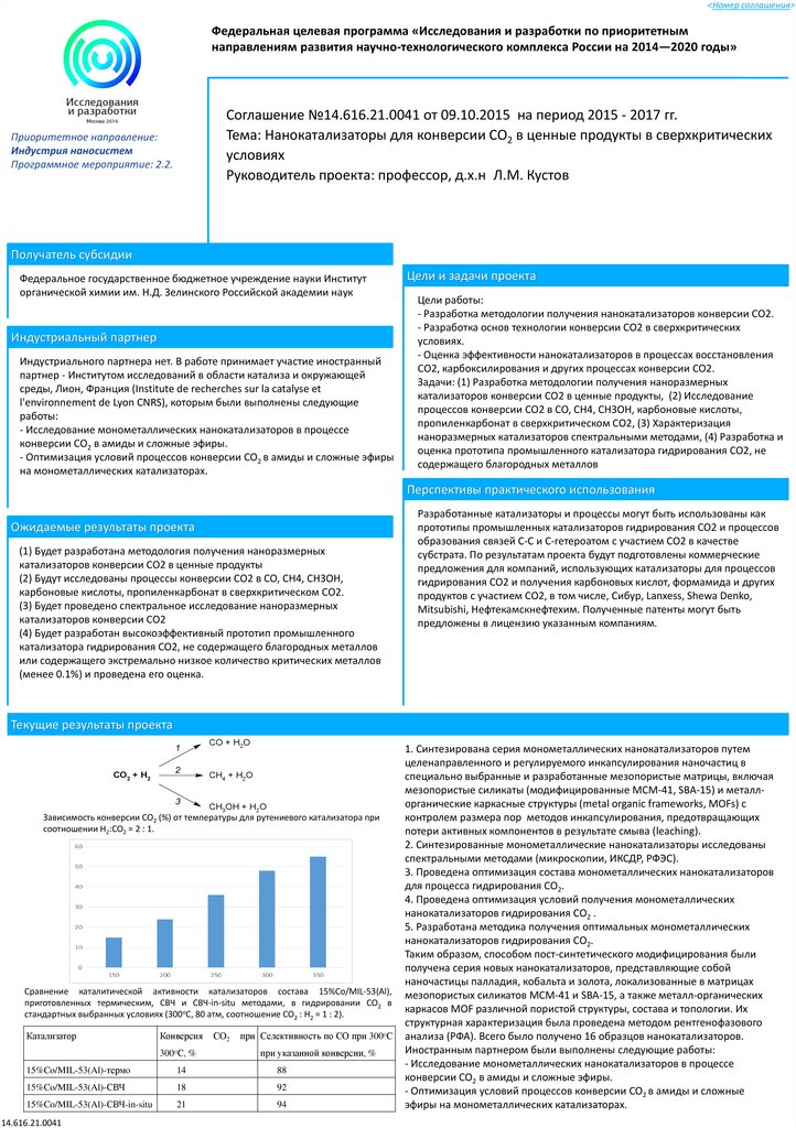 Руководитель проекта: профессор, д.х.н. Л.М. Кустов