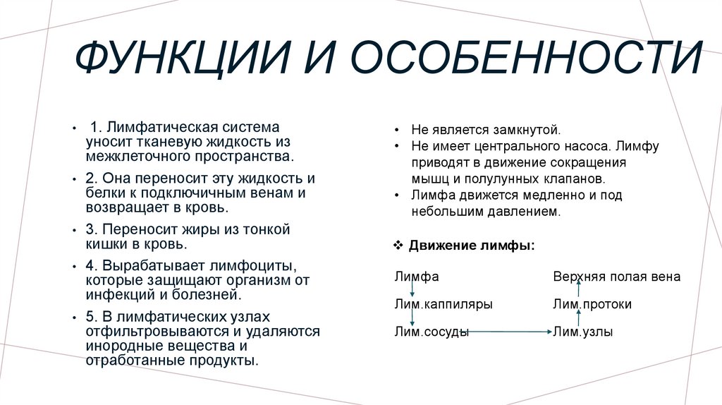ФУНКЦИИ И ОСОБЕННОСТИ1. Лимфатическая система