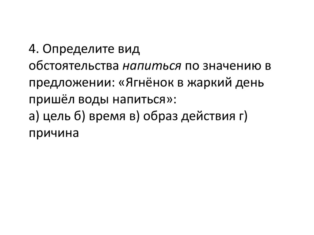 4. Определите видобстоятельства напиться по значению в