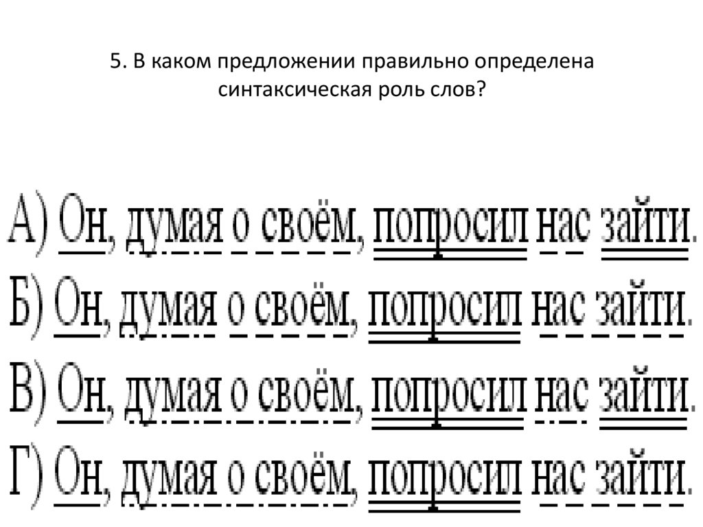 5. В каком предложении правильно определенасинтаксическая роль слов?