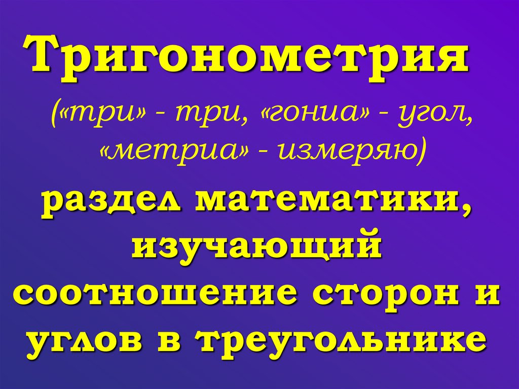 Тригонометрия(«три» - три, «гониа» - угол,