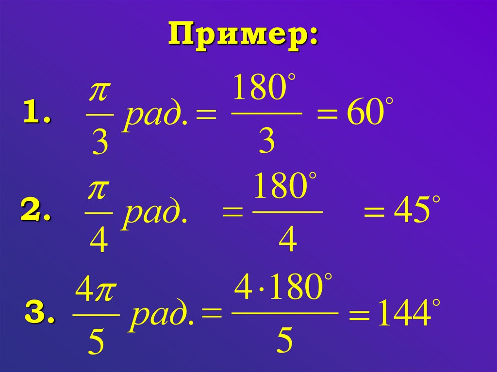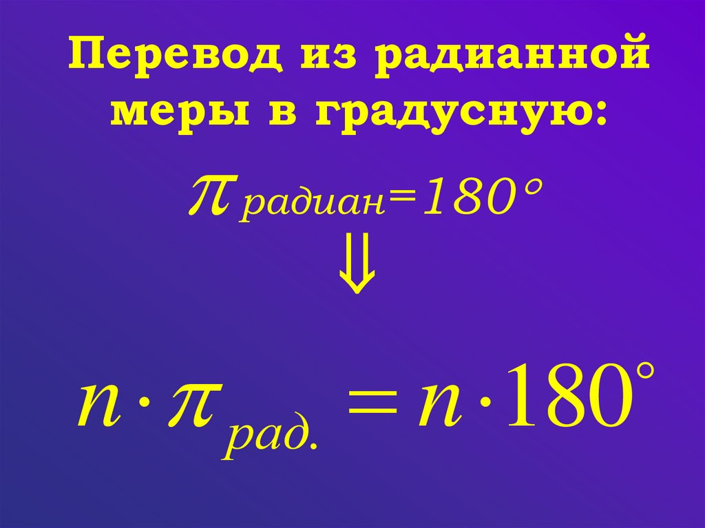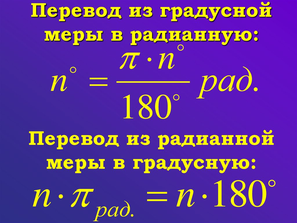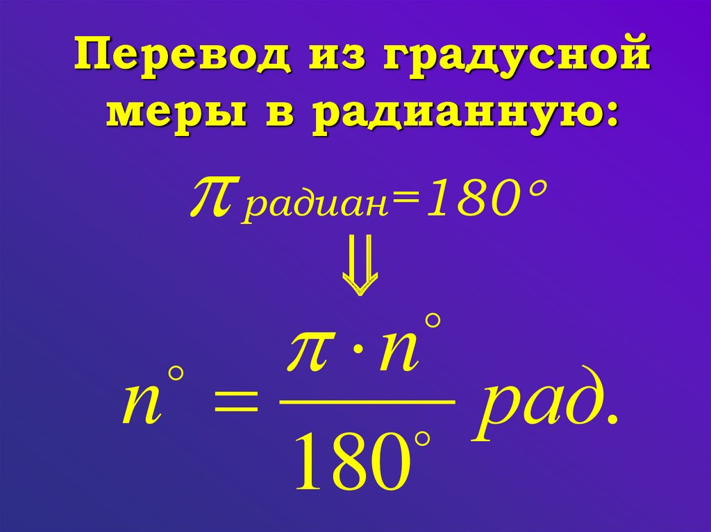 градусной меры угла в радианную и