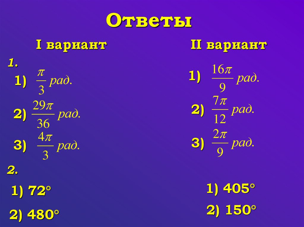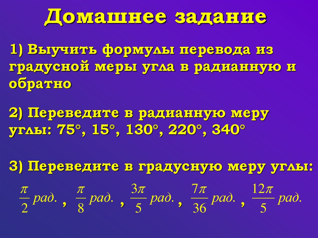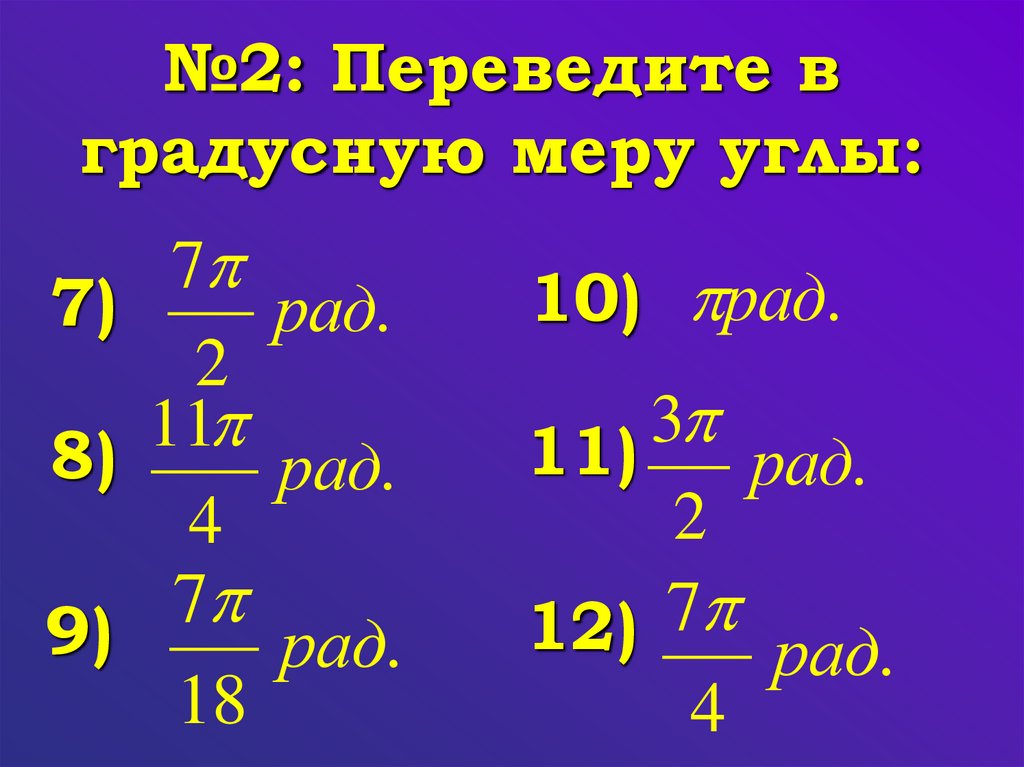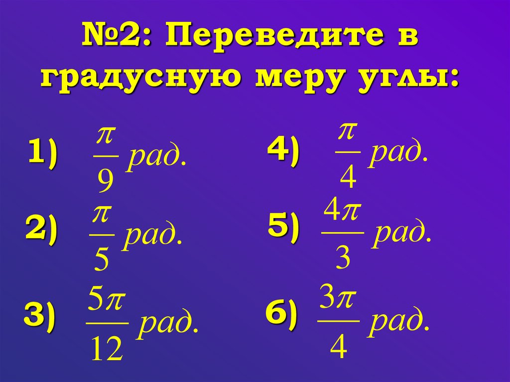 2) Переведите в радианную меру