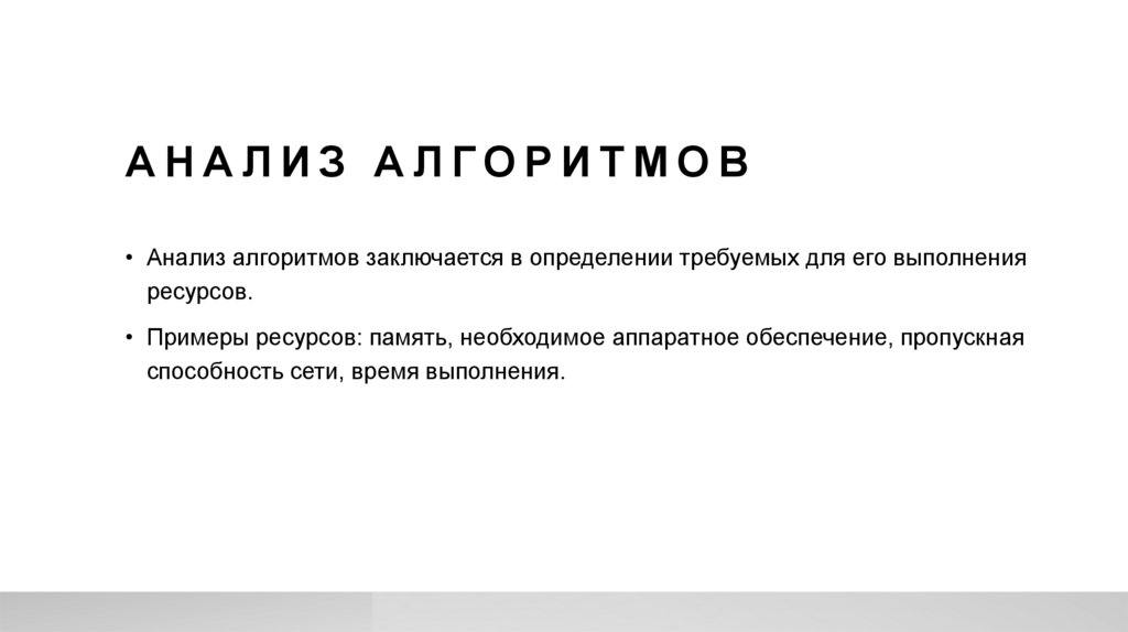 АНАЛИЗ АЛГОРИТМОВ• Анализ алгоритмов заключается в определении требуемых для его выполнения