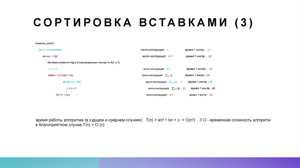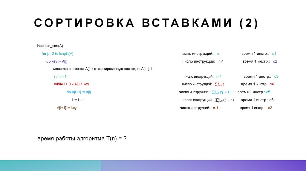 С О Р Т И Р О В К А ВС ТА В К А М И ( 2 )Insertion_sort(A)