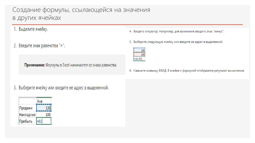Создание формулы, ссылающейся на значения
