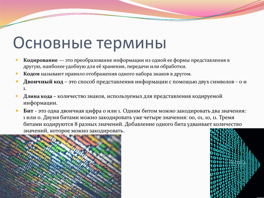Основные терминыКодирование — это преобразование информации из одной ее формы представления в