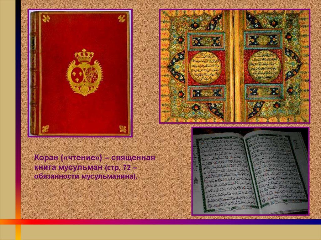 Коран («чтение») – священнаякнига мусульман (стр. 72 –