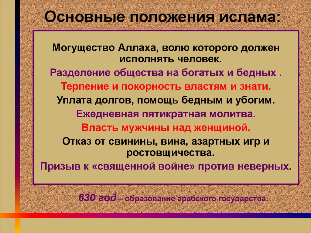 630 год – образование арабского государства.