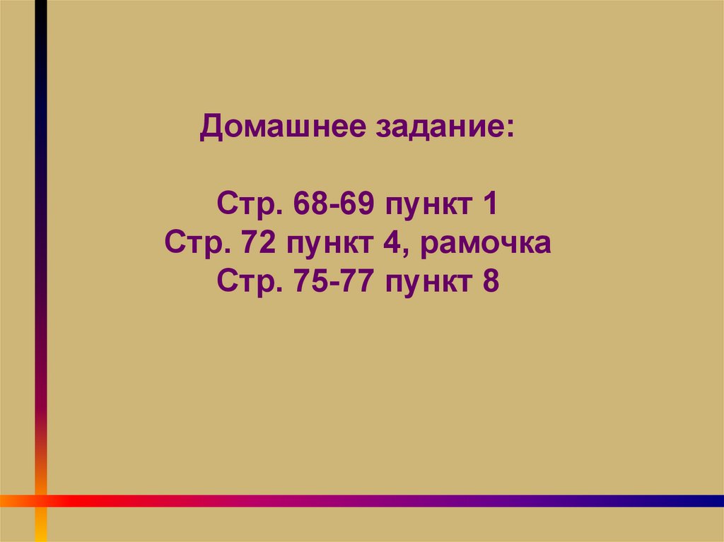 Домашнее задание:Стр. 68-69 пункт 1