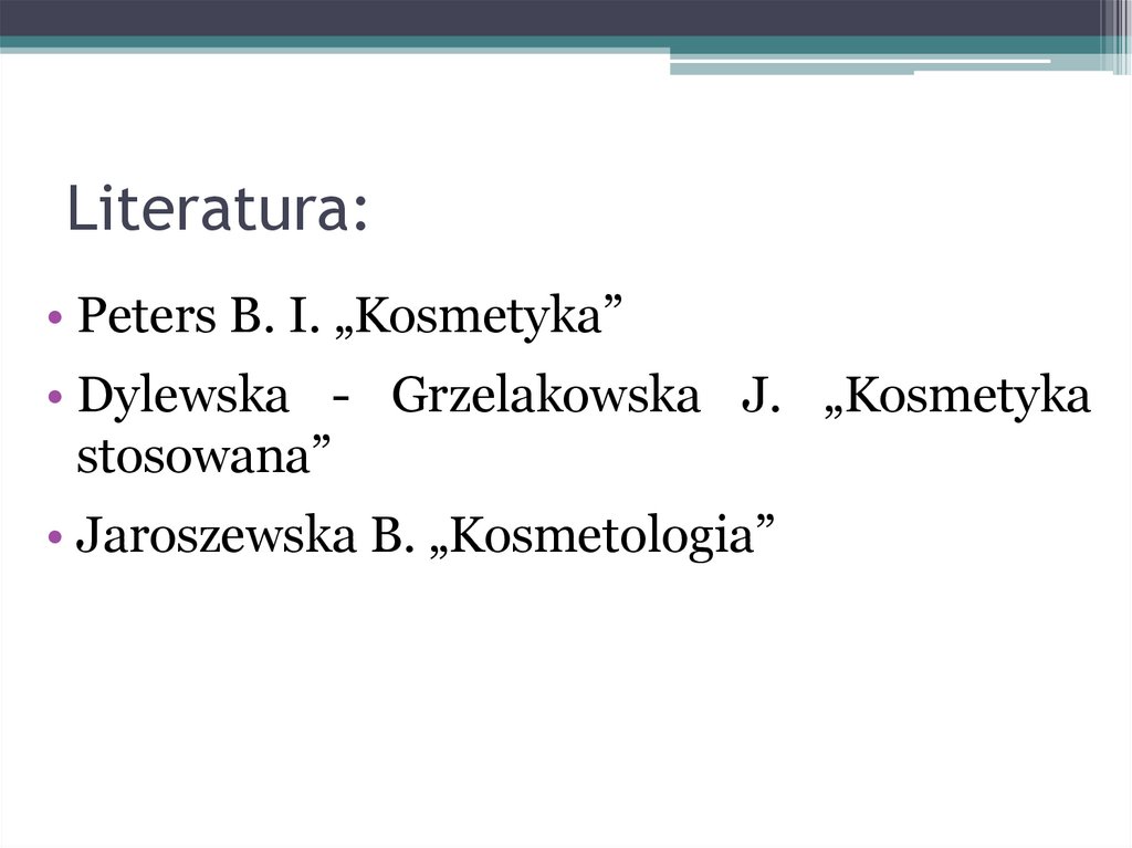 • Dylewska - Grzelakowska J. „Kosmetyka