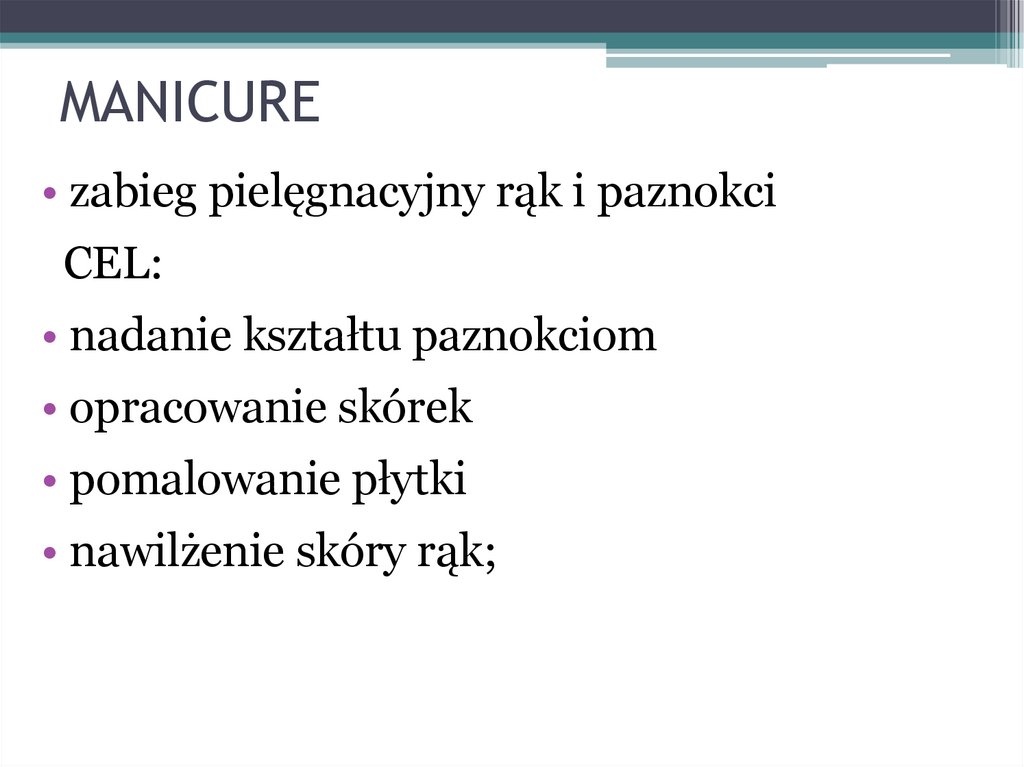 MANICURE• zabieg pielęgnacyjny rąk i paznokci