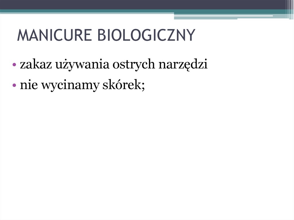 MANICURE BIOLOGICZNY• zakaz używania ostrych narzędzi