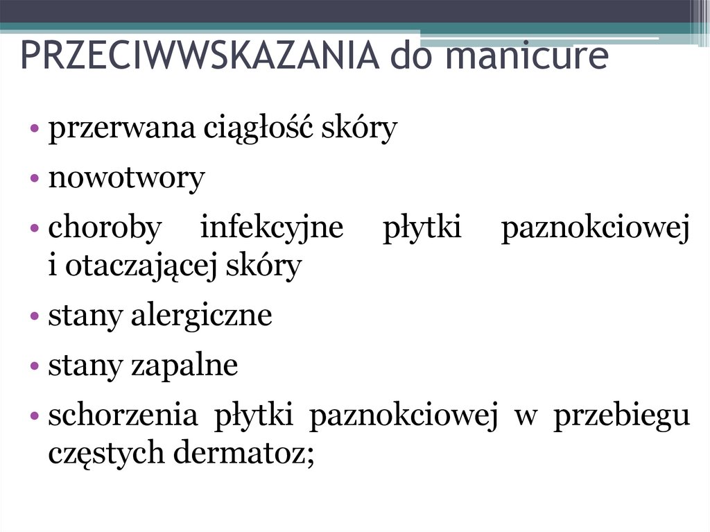 PRZECIWWSKAZANIA do manicure• przerwana ciągłość skóry