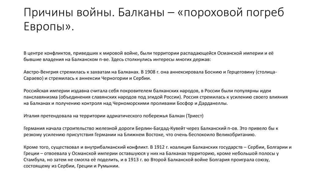 Причины войны. Балканы – «пороховой погребЕвропы».