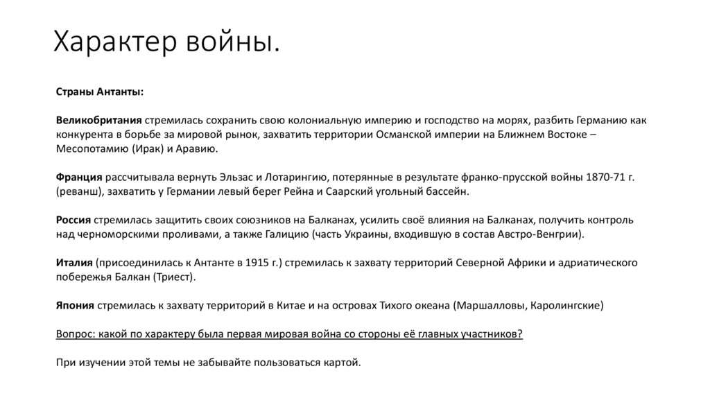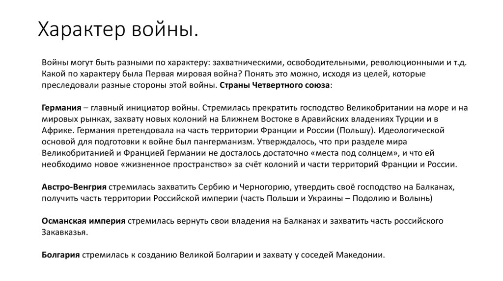 Какой по характеру была Первая мировая война? Понять это можно, исходя из целей, которые