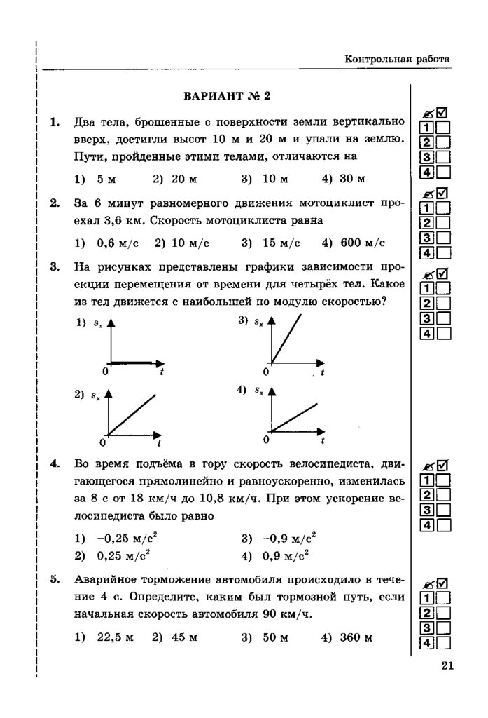 Основы кинематики. Подготовка к контрольной работе, 9 класс
