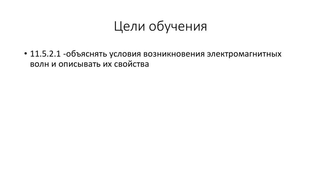 Цели обучения• 11.5.2.1 -объяснять условия возникновения электромагнитных