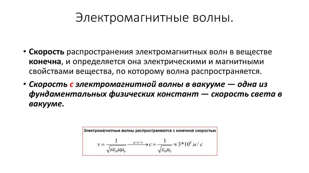 Электромагнитные волны.• Скорость распространения электромагнитных волн в веществе