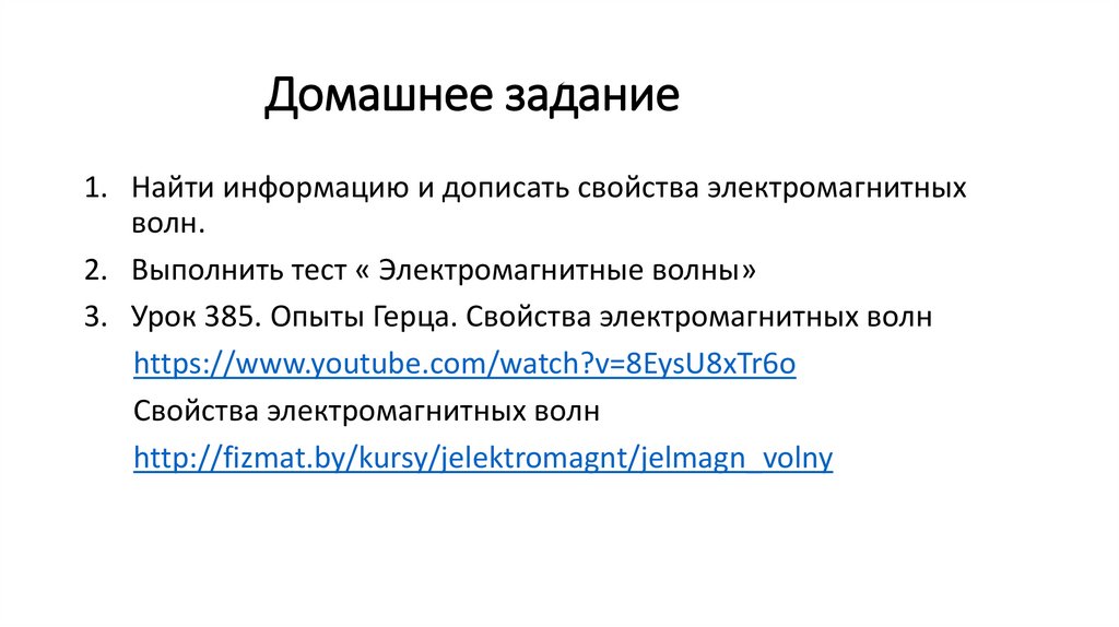 Домашнее задание1. Найти информацию и дописать свойства электромагнитных