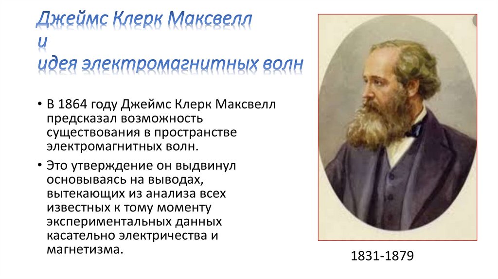 • В 1864 году Джеймс Клерк Максвеллпредсказал возможность