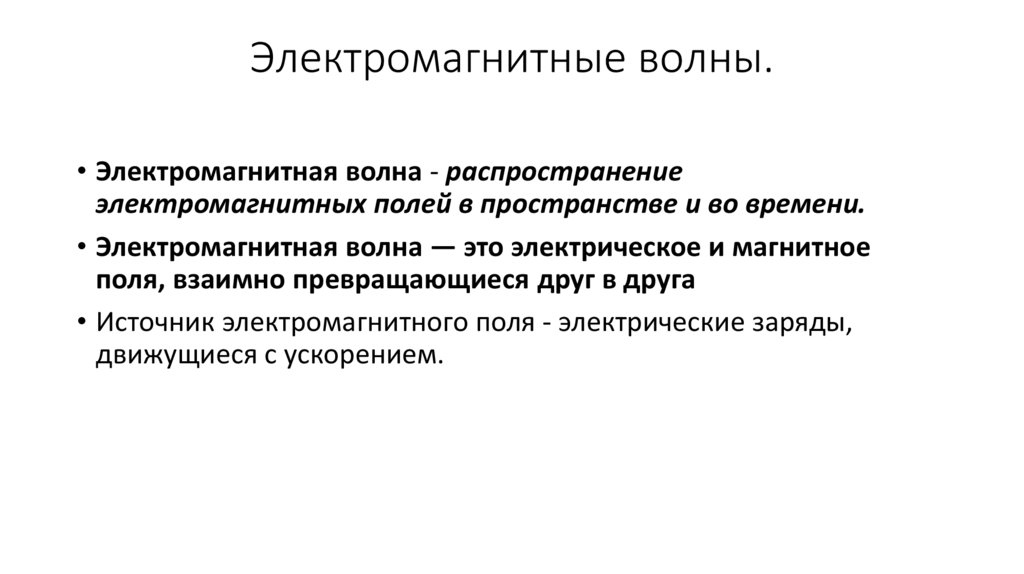 Электромагнитные волны.• Электромагнитная волна - распространение