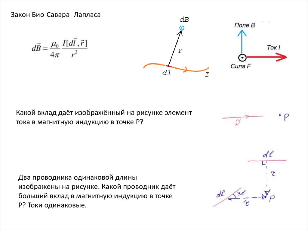 Закон Био-Савара -ЛапласаКакой вклад даёт изображённый на рисунке элемент