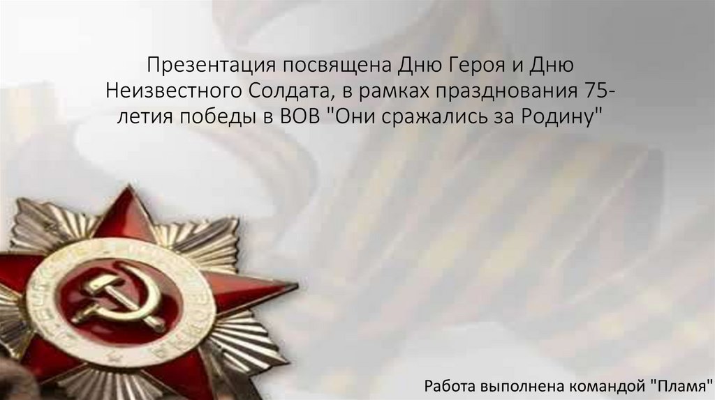 Презентация посвящена Дню Героя и ДнюНеизвестного Солдата, в рамках празднования 75летия победы в ВОВ "Они сражались за Родину"