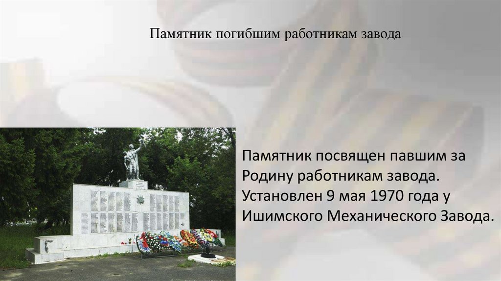 Памятник погибшим работникам заводаПамятник посвящен павшим за