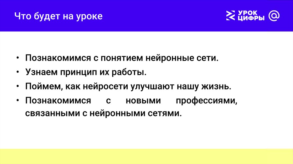 Что будет на уроке• Познакомимся с понятием нейронные сети.