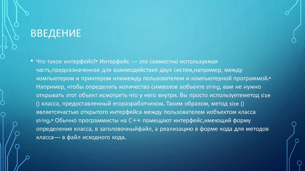 string.• Обычно программисты на C++ помещают интерфейс,имеющий форму
