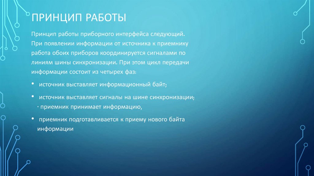 ПРИНЦИП РАБОТЫПринцип работы приборного интерфейса следующий.