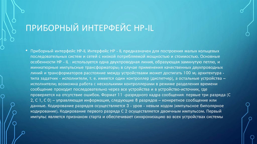 ПРИБОРНЫЙ ИНТЕРФЕЙС HP-IL• Приборный интерфейс HP-IL Интерфейс HP - IL предназначен для построения малых кольцевых