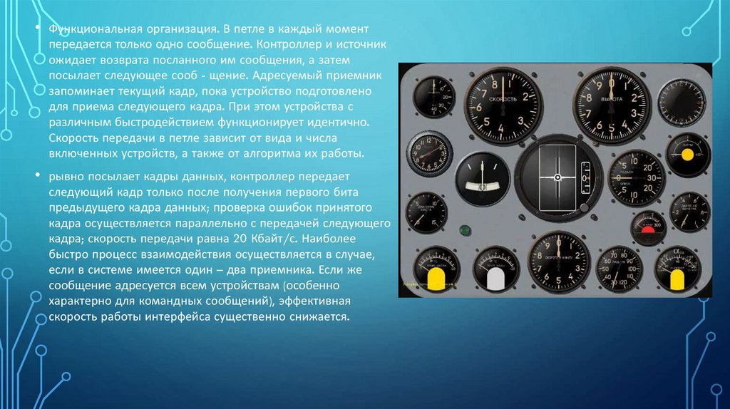 • Функциональная организация. В петле в каждый моментпередается только одно сообщение. Контроллер и источник