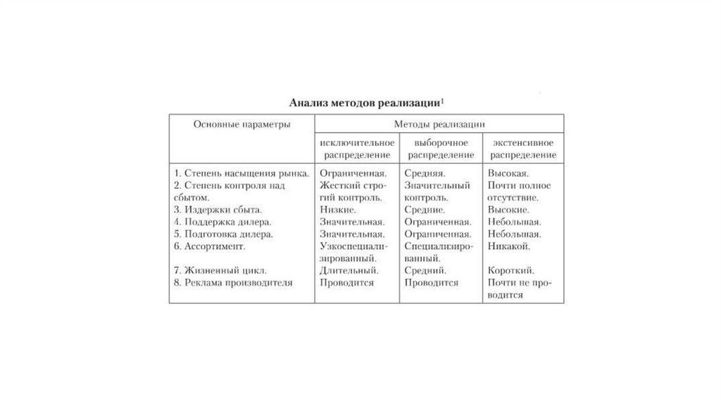 охвата подходит для товаров повседневного спроса, сырьевых товаров и нетрудоемких услуг. Особенности: разная