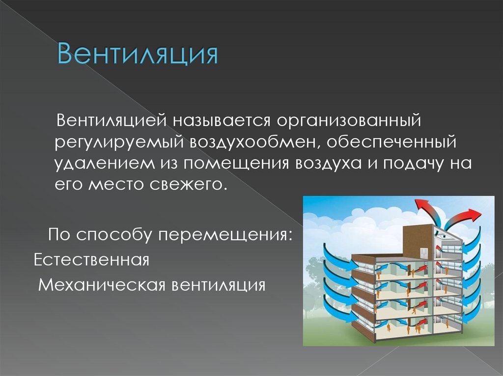 Вентиляцией называется организованныйрегулируемый воздухообмен, обеспеченный