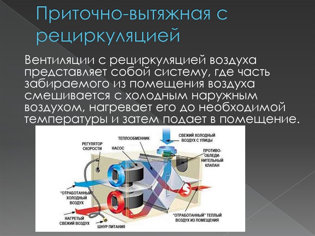 Вентиляции с рециркуляцией воздухапредставляет собой систему, где часть